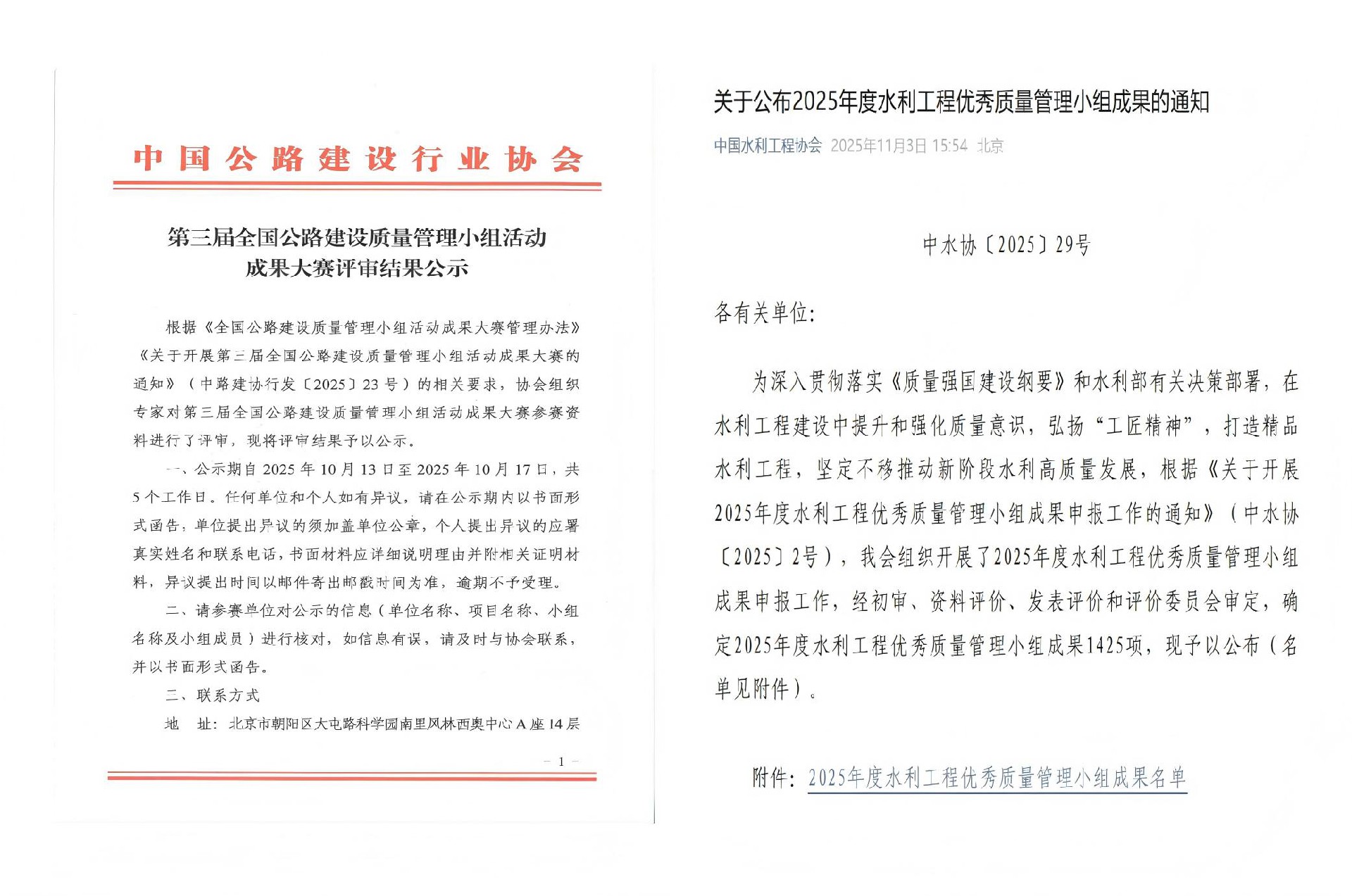 近日,中國(guó)公路建設(shè)行業(yè)協(xié)會(huì)、中國(guó)水利工程協(xié)會(huì)先后公布了第三屆全國(guó)公路建設(shè)質(zhì)量管理小組活動(dòng)成果評(píng)審結(jié)果和2025年度水利企業(yè)質(zhì)量管理小組競(jìng)賽活動(dòng)結(jié)果。“···